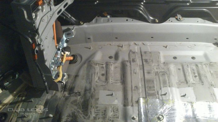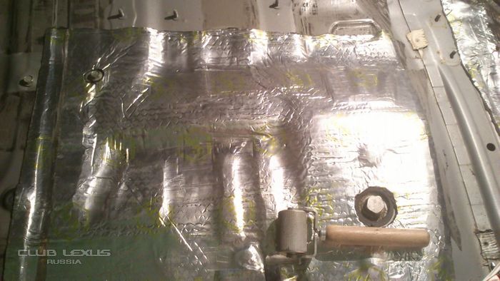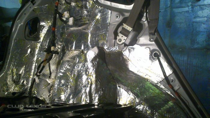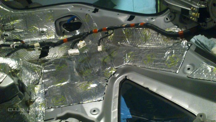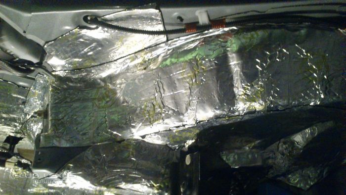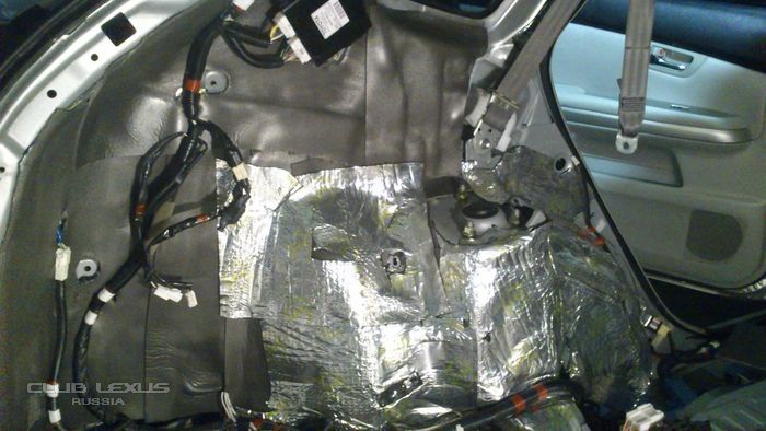 за пятничный вечер и выходные (около 12 часов работы) было сделано: 1. Оклеен спленом правый бок багажного отделения + арка bimast gold 1 слой поверх сплена. 2. Крыша bimast silver + сплен 3004 по одному слою. 3. Пол в ногах у пассажиров и под передними сиденьями - bimast bomb + сплен 3004 4. Удалена штатная изоляция под ногами водителя и пассажира - была потрескавшаяся, местами отдиралась без шпателя и нагрева. 5. Пол под ногами водителя и пассажира - bimast bomb+сплен 3004+bimast silver 6. Отмыты все детали обшивки. 7. Почищена линза лазера в задней развлекательной системе.