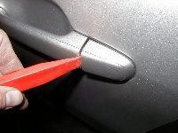 В передних дверях установка хромированных ручек займёт 10 минут максимум на обе двери. Открываем переднюю дверь, с торцевой стороны снимаем резиновую заглушку(на высоте дверной ручки), звёздочкой (т30) выкручиваем болтик и чуть подталкиваем его внутрь, что бы вытолкнуть наружу ответную часть ручки. Вынимаем её снаружи. Затём берём основную часть ручки и движением назад/на себя (по ходу авто) вынимаем её из двери . Хромированную ручку ставим в обратном порядке , заворачиваем болтик и ставим заглушку. Правая дверь-аналогично.