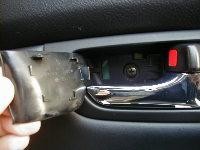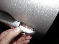 Снимаем дверной подлокотник (он на защёлках, просто тянем вверх), вынимаем пепельницу, а за ней и сам пластик с кнопкой стеклоподъёмника (принцип тот же что и с подлокотником) отсоединив клемму , и снимаем заглушку на внутренней ручке двери. Открывшиеся три саморезика выкручиваем. Снизу подцепив обшивку двери, отрываем её аккуратно (клипсы), вынимаем разъёмы подсветки и снимаем тросики ручки и кнопки закрывания двери. На торце двери выкручиваем три болтика (звездочка) крепления механизма замка. Отклеиваем часть плёнки и отодвигаем на 3-5см вперёд (по ходу машины) механизм замка. Отрываем маленькую полиэтиленовую заглушку, закрывавшую доступ к болтику. Открылся доступ к креплению ручки! Звёздочкой с удлинителем (10см) откручиваем болтик и так же выдавливаем ответную часть внешней ручки наружу. Уже знакомым движением назад/на себя вынимаем родную ручку. В обратном порядке ставим хромированную ручку. Собираем всё в обратном порядке, не забыв подсоеденить подсветку дверей, и переходим к правой двери!