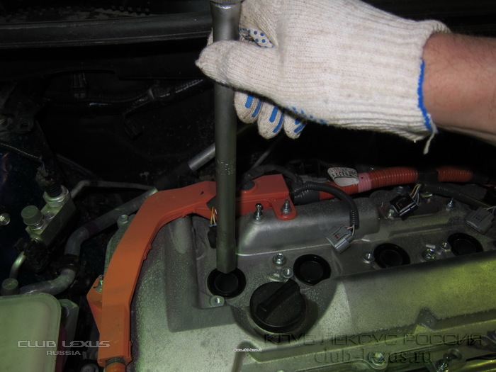 Головкой на восемь откручиваем фиксирующие болты катушек зажигания