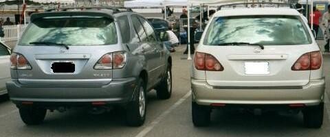 Слева - Lexus RX 300 после рестайлинга (2001 м.г.), справа - до рестайлинга. Задние фонари от "евро" 2001- 81560-48020 внеш лев 81550-48020 внешн пр 81580-48040 внутр пр 81590-48040 внутр лев От "американского" RX 2000- 81560-48020 Фонарь в сборе 95,53$ 81550-48020 Фонарь в сборе 95,49$ 81580-48030 Фонарь задний 69,36$ 81590-48030 Фонарь задний 68,93$ (примерные цены на 2006 г.) Отличие американских от европы - отсутствие противотуманок (визуально европейские фары с небольшими "квадратиками" внутри) Эстететически выбирать надо самому, но большинству импонирует американский вариант, "квадратики" смотрятся в оптике несколько инородно, хотя дело вкуса. Не забудьте про разъемы для боковых (угловых) фонарей, до и после рестайлинга - они разные. Обычно разъемы можно купить в том же месте, где и фонари, продавцы об этой ситуации в курсе. Стоимость комплекта разъемов около 20 долларов, поменять их несложно. И последнее - куда девать задние фонари, оставшиеся после замены? Они никому не нужны, не надейтесь частично окупить замену =) Особо упорные давали многочисленные объявления по продаже, комплект несколько раз удавалось продать за 40-50 долларов и покупают их только сервисы, восстанавливающие битые в зад Рексы и экономящие на всех мелочах. Демонта и монтаж задних фонарей в картинках:
