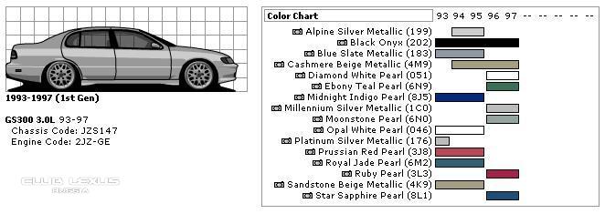 | Коды цветов Lexus GS Информация размещена: Ярослав Левашов 02-10-06. Просмотров: 14911. Суммарный рейтинг статьи: 13 |