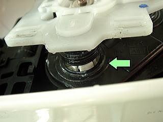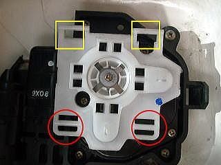При этом обратить внимание на положение привода поворота под нижней частью белой рамки по центру. Он (привод) может выйти из зацепления и обнажиться из-под резинового уплотнения. Аккуратно отверточкой все возвращаем в исходное положение.