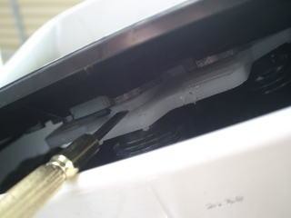 3) Решено было вытащить зеркальный элемент. Для этого аккуратно отстегиваем рамочку по кругу зеркала. Она крепиться на маленьких защелках, которые довольно легко отстегиваются. Проблема в том, что даже когда рамочка снята, зеркальный элемент не вытаскивается. Секрет оказался в клейком белом составе, которым зеркальный элемент крепится к зеркалу. Думаю, что при определенном упорстве и настойчивости можно аккуратно отделить эту "замазку" от зеркального элемента. Но будьте осторожны - именно в этот момент зеркальный элемент ОЧЕНЬ хрупок. Возможно, помогло бы нагревание зеркального элемента и клея под ним феном.