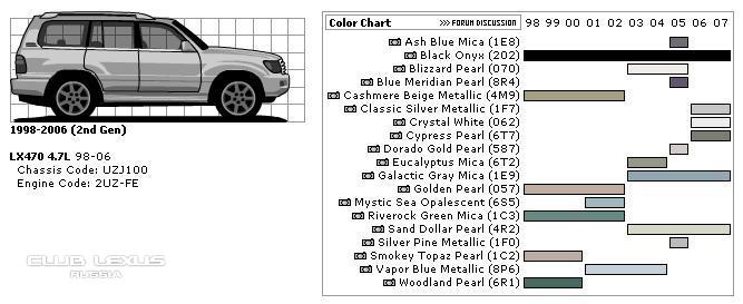 Коды цветов Lexus LX 470