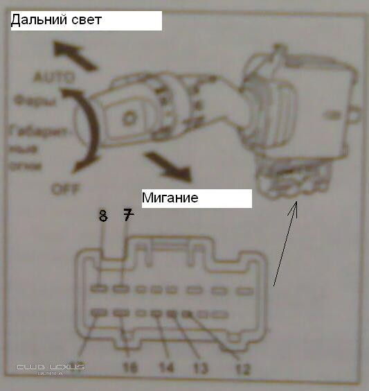 нумерация контактов разъёма подрулевого переключателя