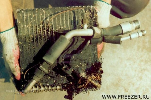 Недавно нам пришлось снять испаритель с автомобиля Субару. Агрегат этот напоминал грядку для разведения шампиньонов. Там в буквальном смысле уже шел процесс образования доброкачественного компоста. Не хватало только червей.