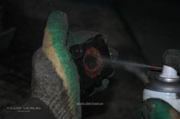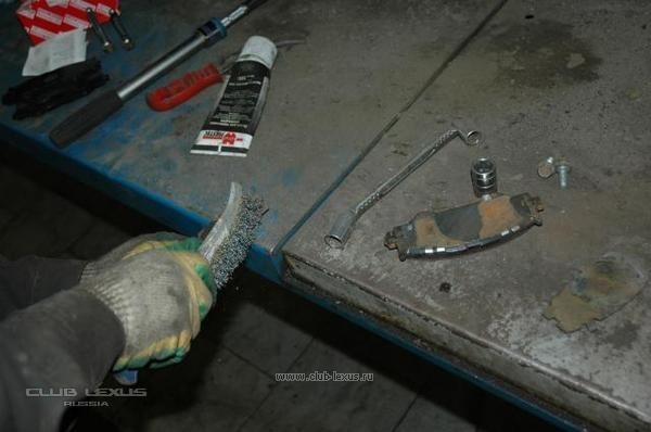 · Очищаем металлической щеткой от грязи передние тормозные механизмы