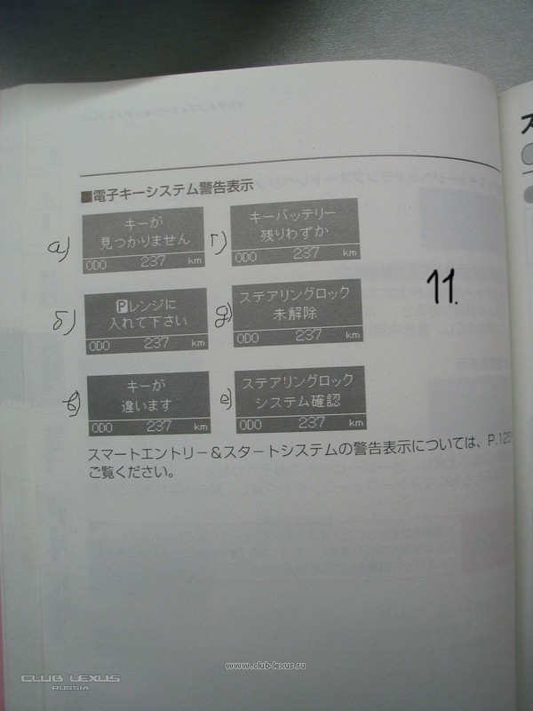 11.Предупредительные сообщения, касающиеся электронного ключа