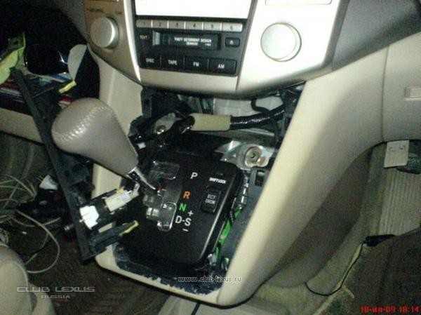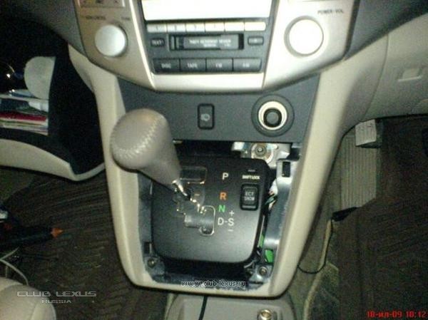 Для этого надо сначала снять накладку под дерево вокруг рычага АКПП. Для этого надо просто ее потянуть вверх, сначала с ближнего к водителю края, потом сверху. Она должна довольно легко отстегнуться.
