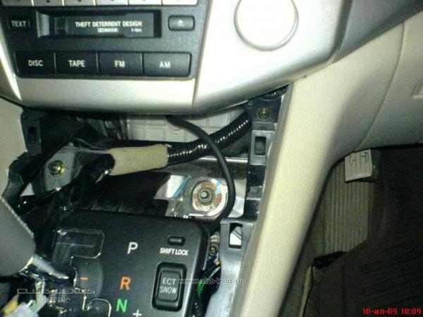 Для этого надо продавить ковер, лучше на углу. Появится щель. Потом провод вытянуть наверх и засунуть в знакомый разъем. Провод будет проходить справа от рукоятки АКПП: