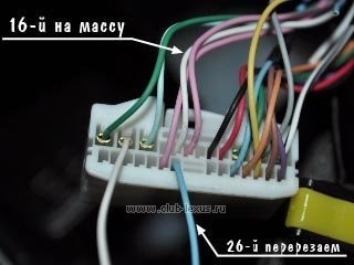Сверху видим 2 разъема. Левый - наш. Отсоединяем, разрезаем нужные провода, изолируем.