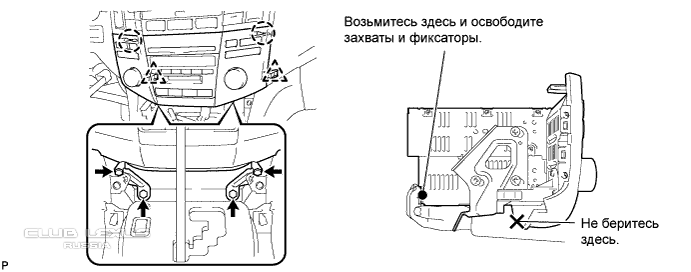Засовываем руку под магнитолу и тянем на себя.