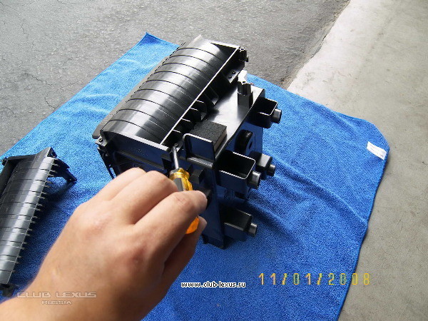 12 Теперь откручиваем с каждой стороны по 5 маленький шурупчиков и аккуратно снимаем полумесяцы чехлы из за которых в общем и происходят траблы в этом узле