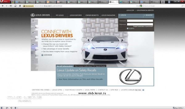 1: Регистрируетесь на сайте как владелец своего лексуса