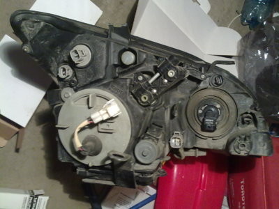 Дергаем фару на себя, отсоединяем все колодки и кладем на стол (постелите что-нить, чтобы не поцарапать).