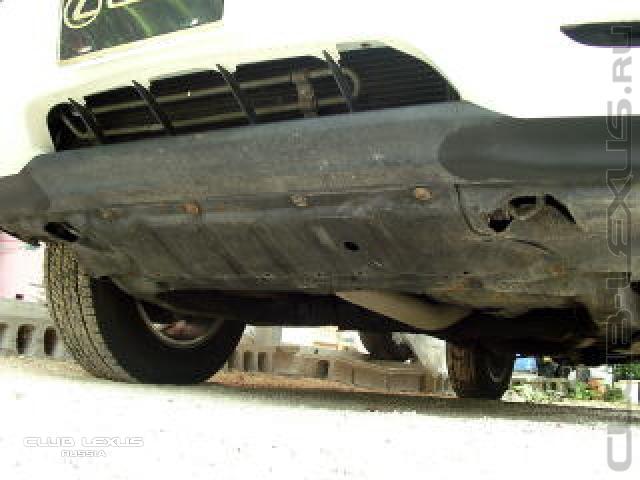 Штатная защита (на примере Lexus RX 300) сделана из пластика и при форсировании даже дворовых сугробов, легко может повредиться или вовсе оторваться.