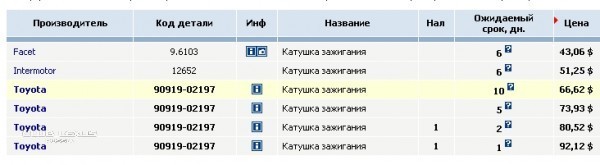 opletaev писал(а): LSводы может подскажете где мне побыстрому найти катушку зажигания код детали 09919-02197, только мне его надо доставить в Ханты-Мансийск если цена разумная то оплачу все расходы с покупкой и доставкой до города. У нас в городе ни чего нет, только под заказ минимальный срок доставки 10 дней, а мне надо побыстрей машина не может ехать на 4 цилиндрах. Плиз........Чтой-то Exist не признает такой номер... Уточни обязательно, а то без номера у продавцов спрашивать бесполезно, сам понимаешь!