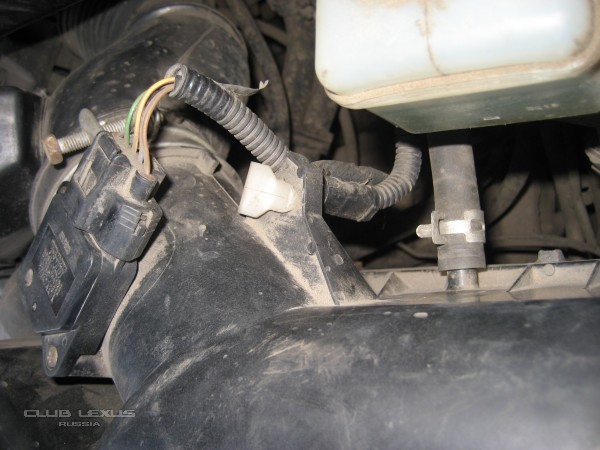 Жаль на фото не видно куда идет провод. Он подходит в одной оплетке с тем который подсоединен к датчику расходомера воздуха и отходит см на 15 ниже от него.