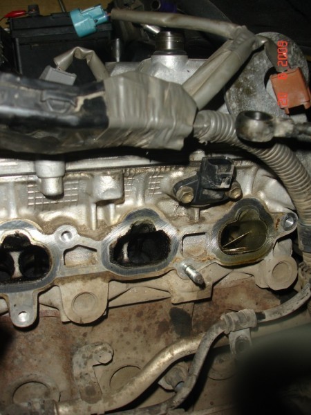 После снятия впускного коллектора (полностью) обнаружились два куска этой самой заслонки. Лежали в в головке перед клапанами шестого цилиндра, благо то, что там перемычка стоит и не вся она туда улетела.