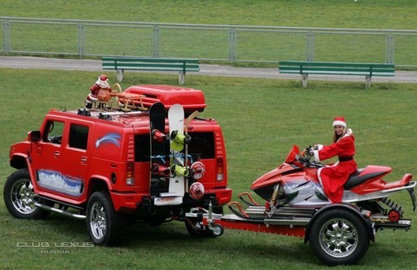 Еще видел маленькие елочки со встроенными гирляндами, запитать от прикуривателя - и на крышу!