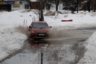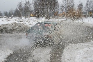 Проезжающие авто поднимали настоящие волны при прохождении поворотов, а Seat набирали воды по самую крышу. Веселей всего было полноприводным авто их владельцы вдоволь развлекались проходя в заносе финальную петлю и окатывая всех кто наблюдал за заездом на старте. Больше всех зажигал Владимир Мануйлов. Помимо общего fun комментарии участников сводились к тому, что условия на трассе меняются на каждом круге. Аквапланирования не было, но под водой не видать асфальт или лед, а сами участники к счастью не рискнули переобуться на летнюю, так что подавляющее большинство было на «оставшихся» шипах)