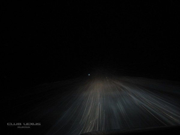 а ночью начался ужасный ветер со снегом, что значительно замедлело нашу скорость и порой приходилось останавливаться с аварийкой т.к. видимость достигала 1 метра.