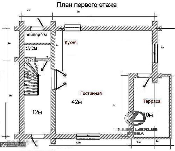 Лестн. холл на 1 эт. тоже надо 3 м шириной делать. У тебя на проход мимо лестницы останется 80-90 см - для входа в гостиную с поворотом на 90 град. - маловато. И вообще с лестницей надо разобраться - у тебя начало подъема с 1-го этажа и выход с лестницы на 2-м - в одном и том же месте на плане указан - в жизни так не бывает (только, если это не винтовая лестница). Да и количество ступеней надо понять - сейчас я насчитала 21 подъем при оптим. высоте 160-170мм, в этом случае высота между этажами получается от 3,3 до 3,5 м.