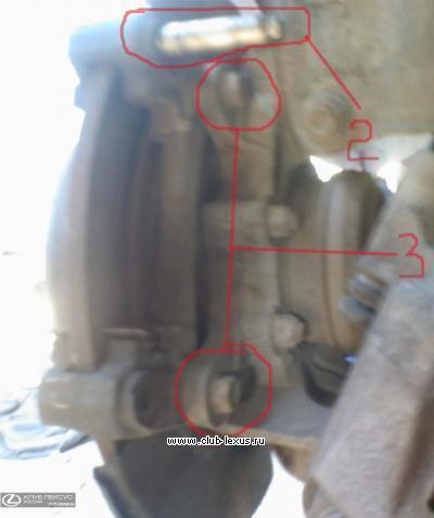 После нужно открутить болты №3, чтобы снять опору суппорта.