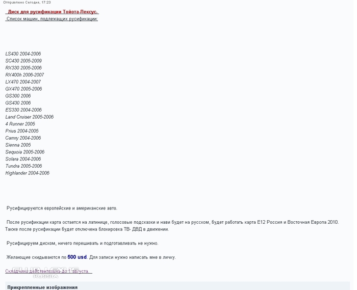 Это, конечно всё очень круто. Но коллеги - лексусоводы, что делать нам - остальной части России? Так и ездить на нерусифицированных Лексусах и захлёбываться "слюньками"? У нас в Сибири Лексусов предостаточно. Неужели нет мастеров по рисификации и GPS-навигации? И почему 300-е не упоминаются? Они что недолексусы Crying or Very sad