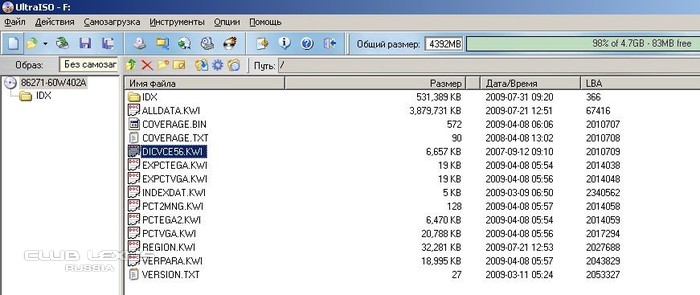 4. Заменил файл dicvce56 на правильный (взятый club-lexus.ru/f...eserver/index.php?folder=309) добавил loading.kwi, затем сохранил образ.