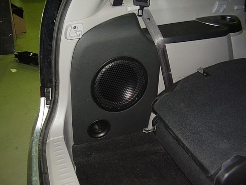 Что касается сабвуферов. Штатный сабвуфер, к сожалению, не в состоянии эффективно излучать глубокий басс в силу различных причин, одна из которых небольшой размер динамика. Устанавливать активный сабвуфер в салоне даже большого автомобиля, совсем неудобно,- занимает значительную часть багажника. Существуют более рациональные и в тоже время, эффективные варианты. Так как, наша студия работает уже достаточно продолжительное время, мы успели разработать, изготовить и опробовать различные виды сабвуферов, одним из которых является очень интересный вариант, который возможно реализовать, в салоне практически любого типа – сабвуфер в нишу заднего крыла. Вот несколько вариантов таких работ.