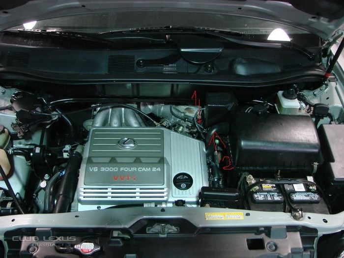 Друзья помогите советом. на фотографии двигательного отсека стрелочкой под номером 1 указан патрубок ну как гармошка такой который к дросселю идет раздвоенный такой. так вот в нем масло обнаружилось я так понимаю попадает оно туда из трубки стрелочка номер 2.