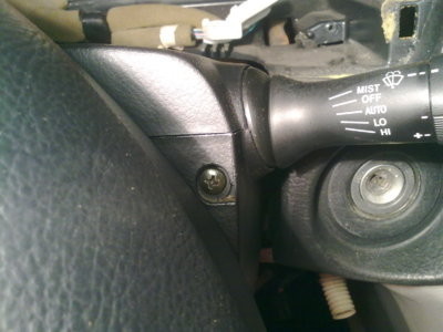 4) снимаем пластиковое оперение с рулевой колонки: 3 шурупа (один снизу, два прячутся за рулем, чтобы открутить попеременно поворачиваем руль на 45 гр.)