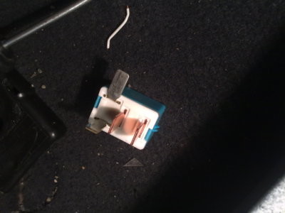 6) затем на блоке предохранителей под панелью находим реле ПТФ, нас интересует первое (слева) синие реле; снимаем его и отгибаем левую ногу (см. фото), к ней паяем провод сантиметров 20, изолируем и ставим реле на место;
