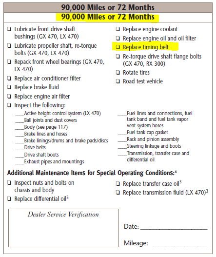 Случайно зашел в тему, но что-то сразу посетило дежавю. Был аналогичный спор на тему RX ... и не раз. За последние лет восемь, на моей памяти Laughing Так вот, получилось, что по американским мануалам - интервал замены ГРМ 90 тысяч миль, а по европейским и японским ... 100 тысяч км. Я даже нативную японскую наклейку с иероглифами (Harrier тогда у меня был) на крышке ГРМ помнится, фотографировал, со строгим предупреждением о замене на 100 тысячах км.