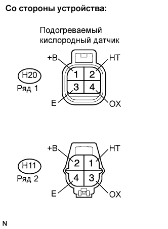 Отсоедини разъем H20 подогреваемого кислородного датчика (датчик 2 ряда 1) или разъем H11 подогреваемого кислородного датчика (датчик 2 ряда 2).