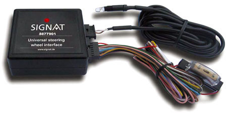 Signat S877901 поставляется в комплекте с многополюсным кабелем. Такая комплектация позволяет соединить устройство с большим количеством и версиями наиболее известными командными кнопками на руле.