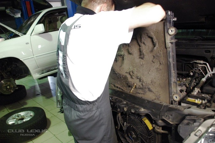 Летом одной из главных проблем владельцев Lexus LX 570 становится повышение рабочей температуры двигателя и плохая работа кондиционера. В большинстве случаев это связано с загрязненным радиатором, который, нагреваясь, передает излишнее тепло впереди стоящему радиатору кондиционера. Из-за этого система кондиционирования автомобиля работает неэффективно.