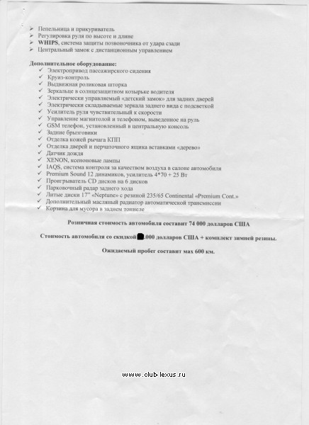 Вот прислали комплектацию! Авто будет продаваться в октябре за 43 тысячи $, в цену входит КАСКО и ОСАГО до конца марта 2008 г.