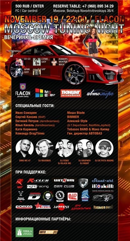 Всех участников вечеринки MOSCOW TUNING NIGHT будут ожидать: