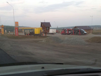 В первый день пути я не доехал до Казани несколько десятков километров, проехав 740км и остановился на одной из фирменных заправочных станций в районе пос.Тюрлема. Здесь было много дальнобойщиков, бесплатный туалет и вода. Как выяснилось поутру, здесь же был душ, но вечером я его не увидел, а жаль. Утром быстро позавтракал и поехал дальше.
