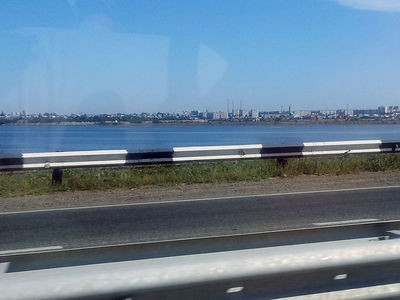 К 13 часам я уже подъехал к Нижнему Новгороду, пришлось немного поплутать по развязке, т.к. навигатор показывал ,что мне прямо, а дорогу туда не проложили! Эх, Расея! Включил Яндекс-Навигатор на смартфоне, он тоже какую то ерунду показал, я и поехал по какой-то объездной дороге. Судя по количеству авто на ней, я был на верном направлении. Эта дорога была очень неровная, видно было, что из-за грузовиков она при жаре сильно деформировалась. Выехал на развязку,