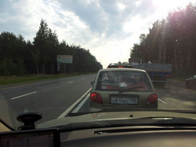 Своё путешествие я начал в 6.30 утра 4 августа. Пока Москва только просыпалась, дороги и МКАД были почти пустые и из района Марьино я быстро добрался до выезда из города на трассу М7. В районе Покрова пришлось потерять около часа в пробке, образовавшейся из-за светофоров, я так и не понял, почему не сделали до сих пор там объезд, ведь там трафик авто очень большой.