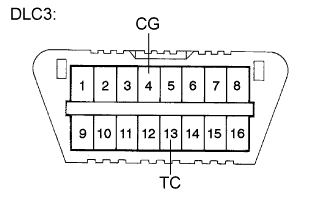 С помощью SST (09843-18040 ) соедините контакты CG (4-ый контакт) и TС (13-ый контакт) разъема DLC3.