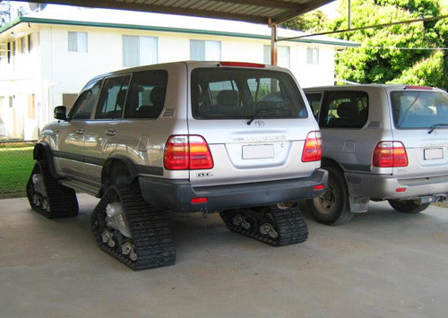 Такую тему на квадрик надо! Говорят не хуже снегохода, хоть я и сомневаюсь. А на сотыге по-моему беспонт такие ставить - зароется, он же под три тонну весит. Ну или гусянка раза в два ширше должна быть