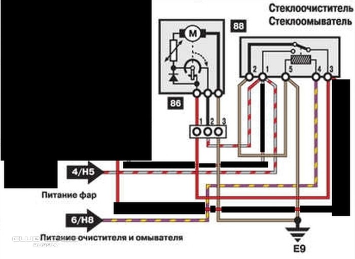 Фароочистилки. Схему слегка минимизировал, чтоб не путаться в несущественном.