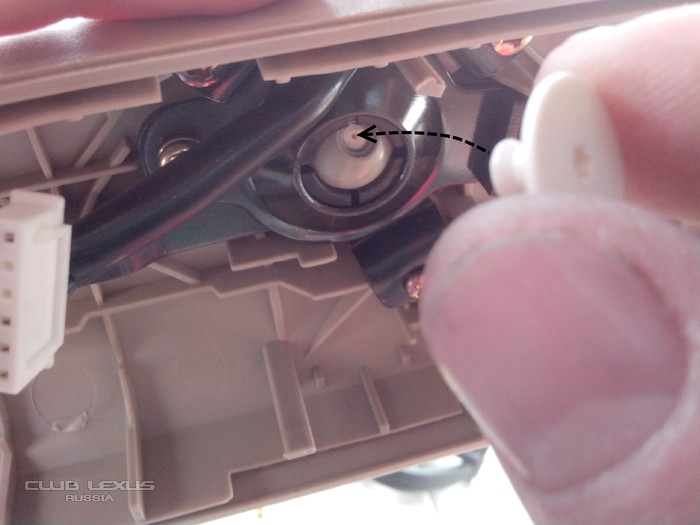 При разборке зеркала выпала пластиковая белая фишка, после некоторых раздумий было, определено же откуда она отломилась - это ограничитель на шарнире, что бы не выкручивалось сильно в разные стороны зеркало. Но так как сила есть - ума не надо, она отломилась (не буду грешить на прежнего хозяина, может и я отломил ).