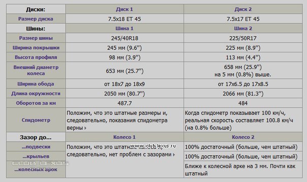 Мне, как и автору темы, не очень нравится штатный размер 245/40R18, хотелось бы установить штатные диски и шины от GS300 - 225/50R17. Но производитель рекомендует для GS450h лишь 245/40R18. Кроме производителя, еще от одного человека слышал про то, что не стоит менять штатный размер. Так ли критично будет изменение размерности для гибрида? По шинному калькулятору расхождение всего в 0.8км/ч между R18 и R17. Да, кстати, влезут ли R17 штатные от GS300 на суппорта GS450h?