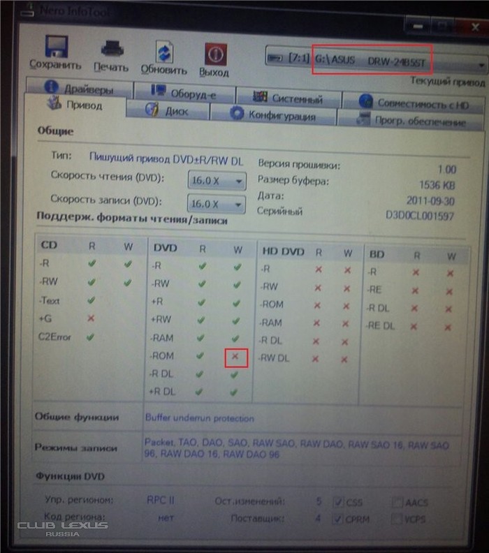 * Как выяснилось в ходе многочисленных экспериментов, проведенных одноклубниками, для европейских машин (точнее, для систем AISIN, которыми они оснащаются), этого уже недостаточно. Привод должен "уметь" еще писать некие характерные для использованного способа защиты параметры диска. Такой способностью обладают далеко не все модели, поэтому (для европейских машин) приведен следующий список: